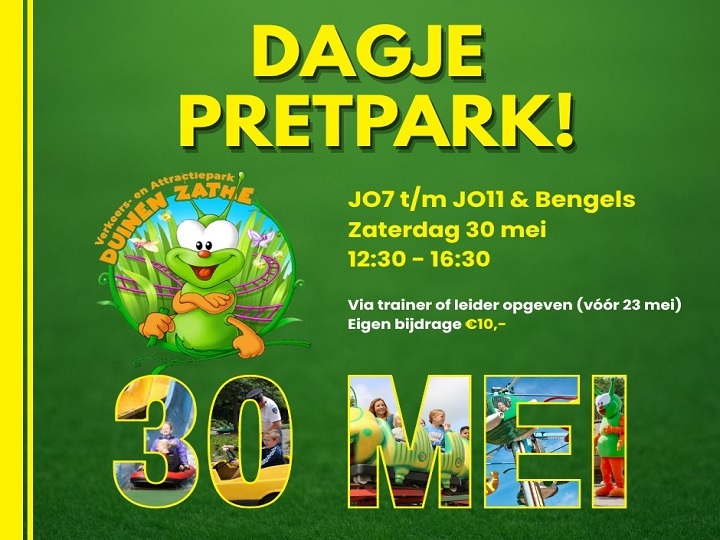Op zaterdag 30 mei gaan we met onze jeugd naar Pretpark Duinen Zathe in Appelscha voor een gezellige en actieve middag vol plezier!